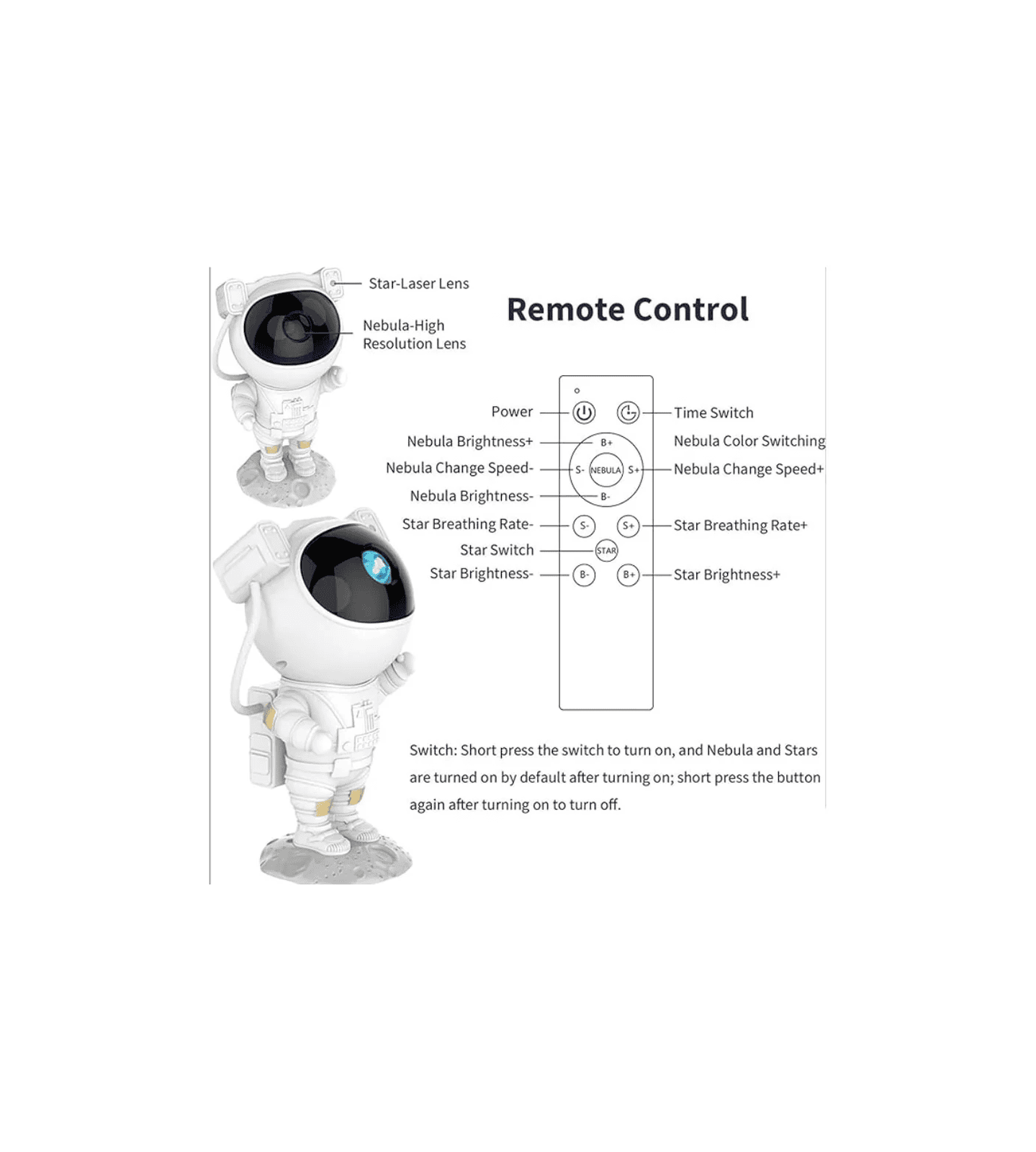 Astronaut Galaxy Star Projector Night Light with Remote Control & USB Power
