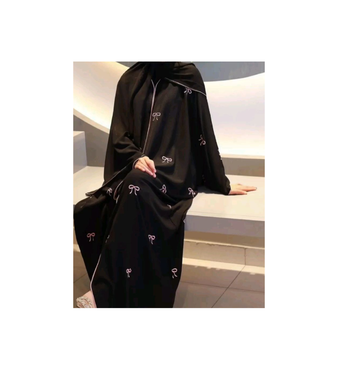 Bow embroidered farosha model abaya with shawl
