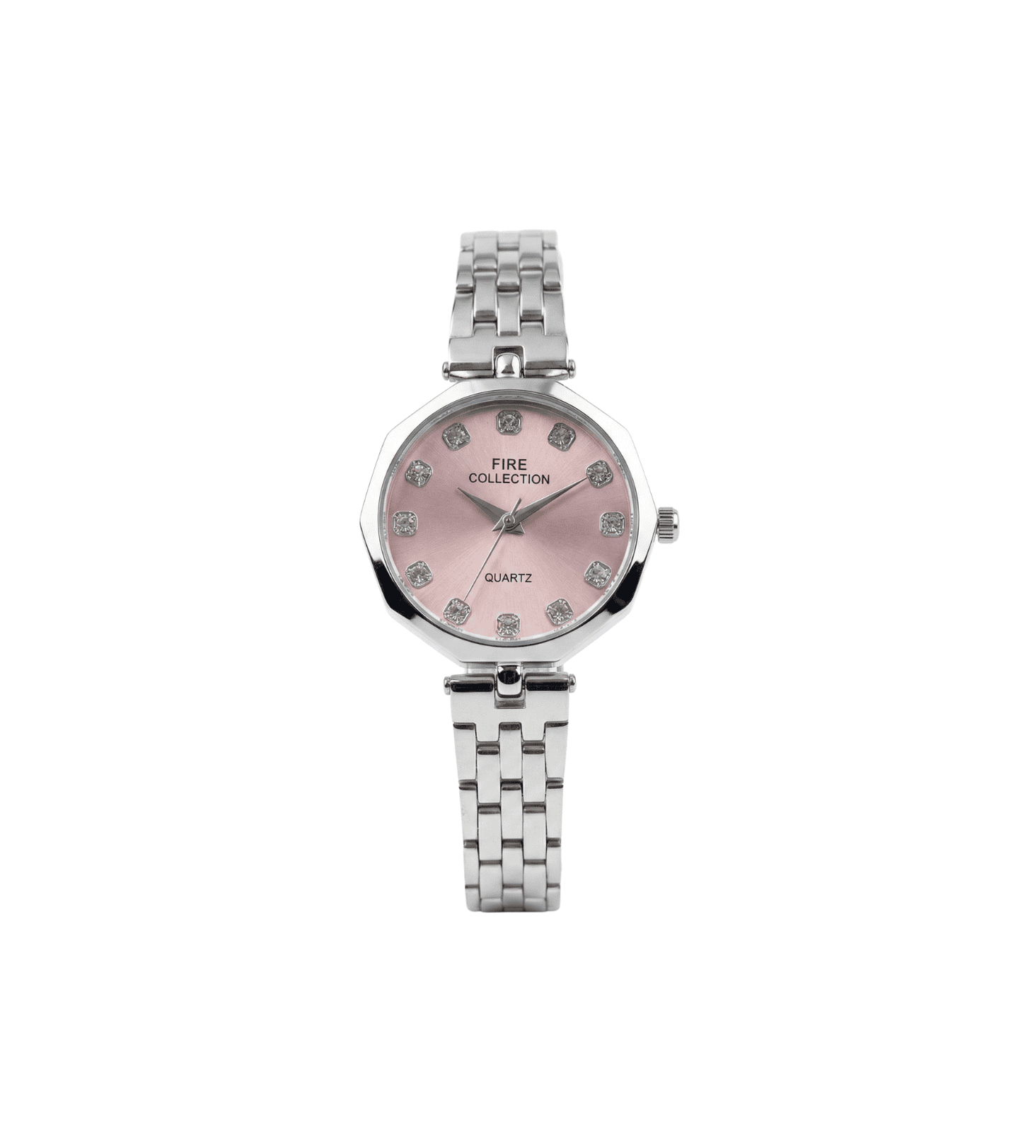 Fire Collection Ladies Quartz Watch Pink Dial Silver Crystal Markers Stylish Gift