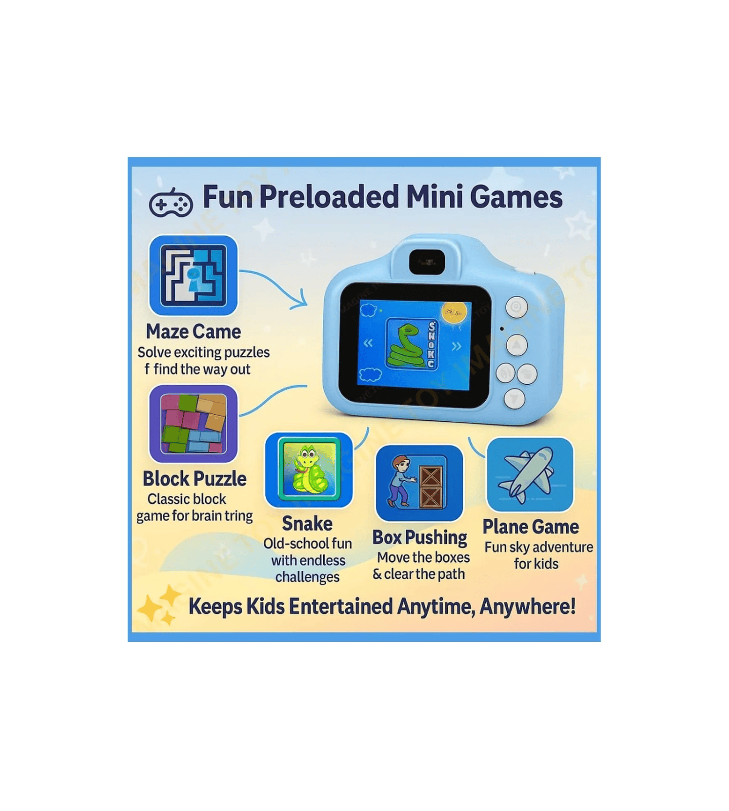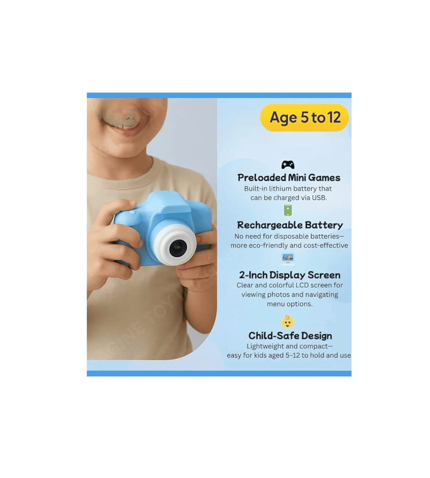 Kids Digital Camera Toy with USB Charging, Lanyard & HD Photo Capture – Pink & Blue