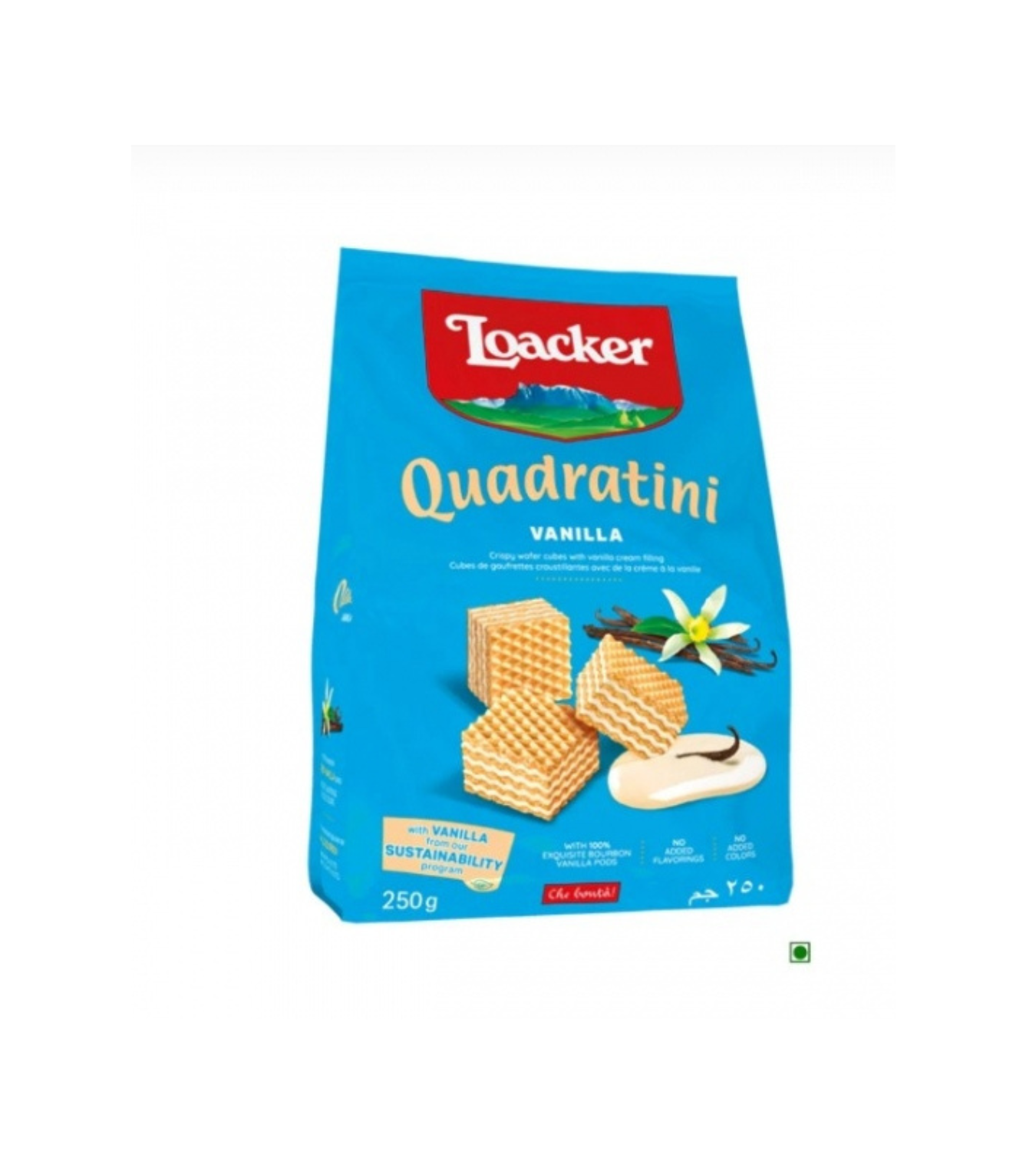 Loacker Quadratini Vanilla offers light, crispy wafer cubes filled with smooth vanilla cream made from real Bourbon vanilla. Each bite... Read more