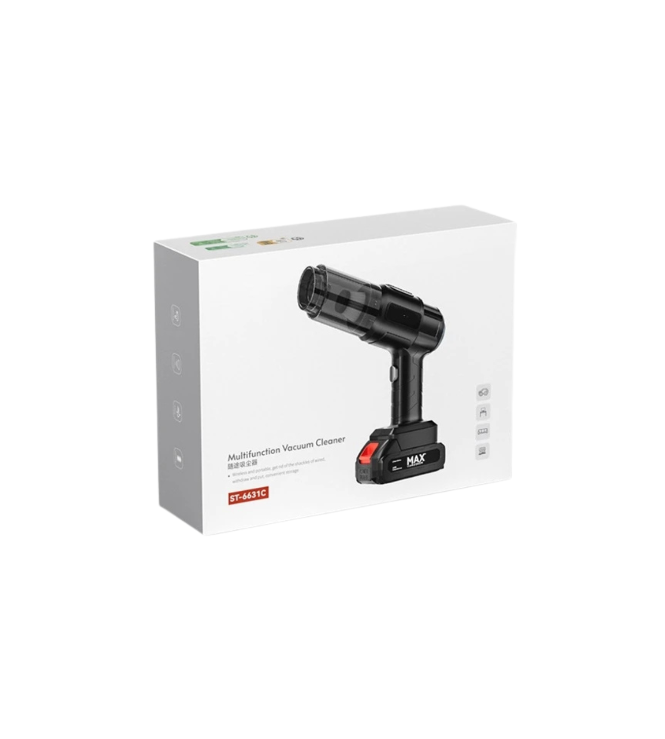 The ST-6631C Multifunction Vacuum Cleaner is a compact, cordless, and portable cleaning device suitable for homes, cars, offices, and small spaces.