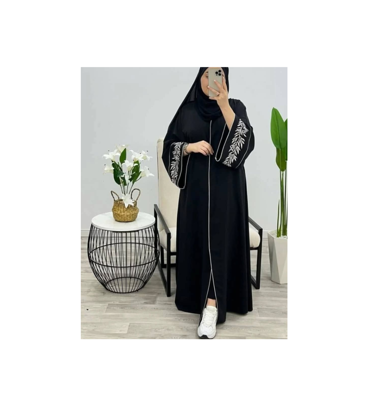 Elevate your modest wardrobe with this Gulf-inspired black abaya featuring delicate white embroidery and a matching shawl. Crafted from premium... Read more
